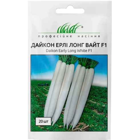 Редька Ерлі Лонг Вайт F1 — це швидкоростучий гібрид редьки дайкон. Має ранній термін дозрівання (період вегетації становить приблизно 2 місяці). Коренеплід цього гібрида білого кольору, без зеленої плями біля кореневої розетки. Довжина плодів — 40–45 см, маса — 0,8–0,9 кг. Плоди соковиті на смак, хрусткі, не мають гіркоти. Ерлі Лонг Вайт F1 відрізняється тривалим терміном зберігання, протягом якого смакові якості коренеплоду не змінюються. Плоди підходять і для переробки, і для свіжого ринку. Гібрид придатний для вирощування восени.